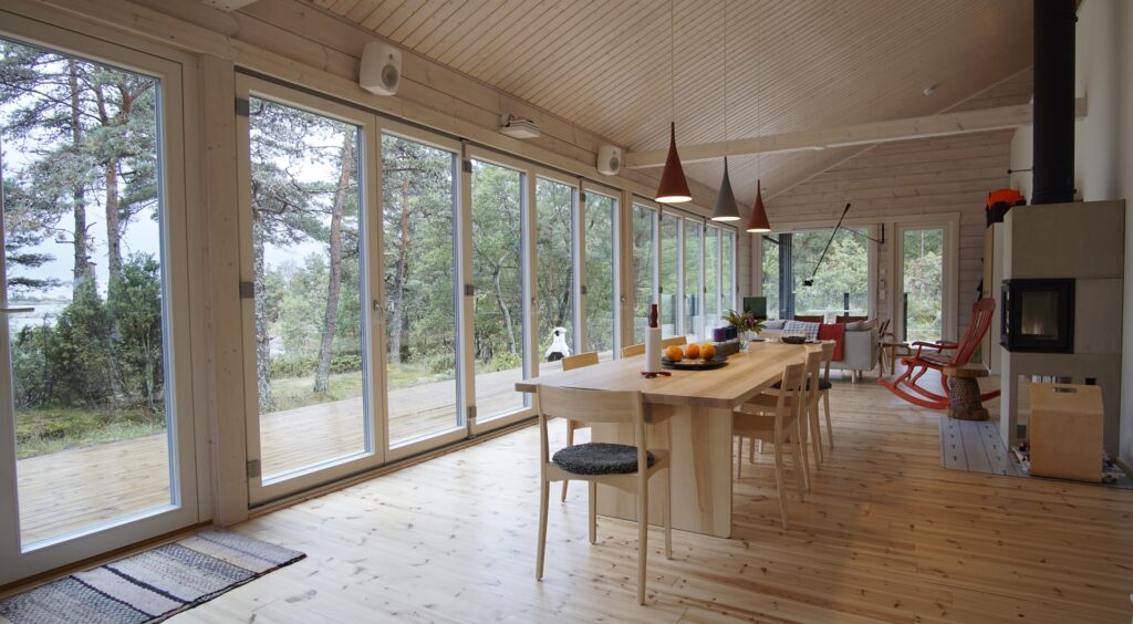 A glue-laminated log consists of two or more lamellas glued together in the same direction.